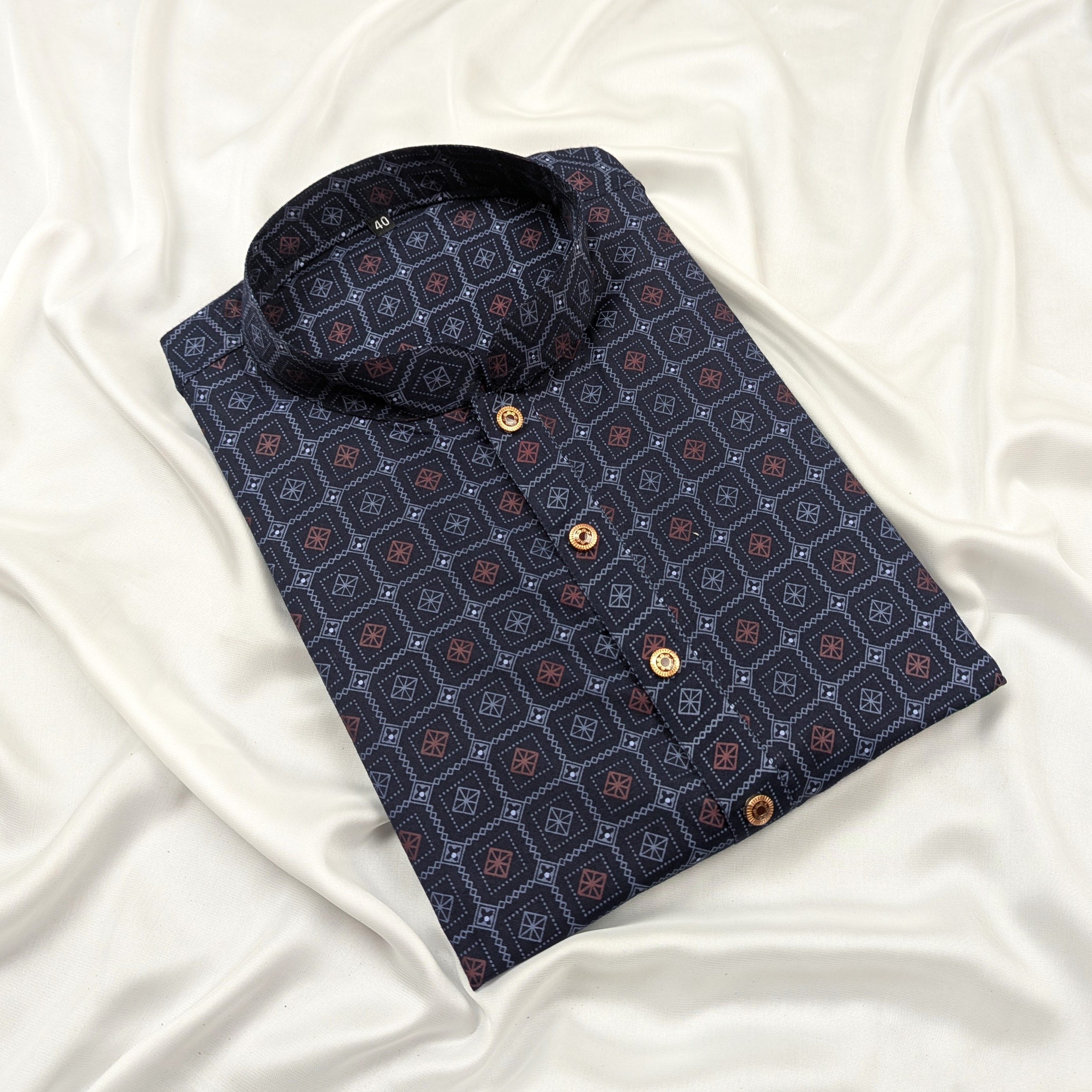 Men's Cotton luxury Punjabi Fabrics: CottonSize Measurment: 40, 42,44Size Chest Length Sleeve Length40 = 42 - 41 - 2342 = 44 - 43 - 23.544 = 46 - 45 - 24