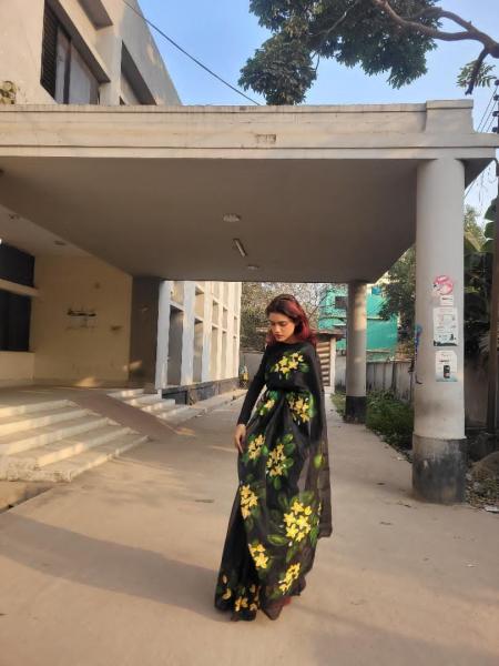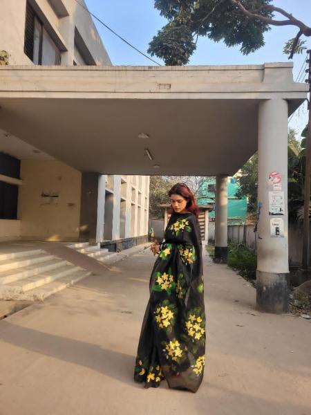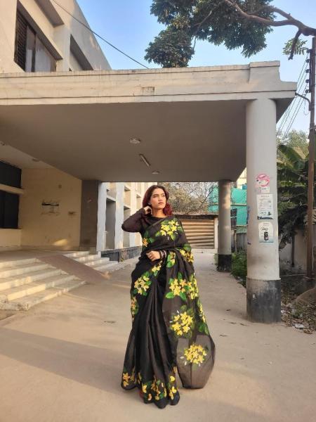 ঐতিহ্য আর আধুনিকতার মেলবন্ধনে নিজস্ব তাঁতের হাফ সিল্ক শাড়ি